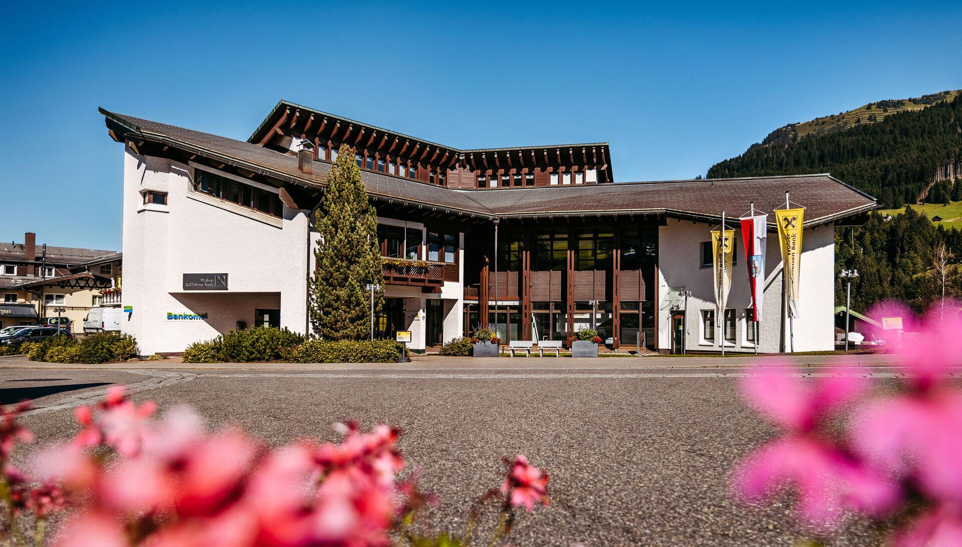 Die Beratung der Walser Raiffeisen Bank AG befindet sich im Raiffeisen Haus schräg gegenüber des Walserhaus. Beratung mit Termin: Mo- Fr 08:00 bis 20:00 Uhr. Der SB-Bereich ist rund um die Uhr zugänglich. Anfahrt: Walserbus Linie 1 Haltestelle Hirschegg – Walserhaus.