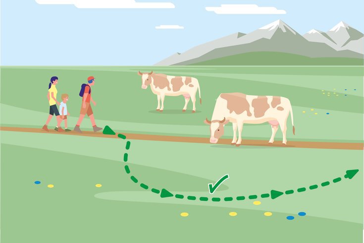 To ensure that you can continue to hike here without limits in the future, we rely on good coexistence on the alps and pastures. To avoid misunderstandings between humans and herd animals, you should take a few tips to heart.