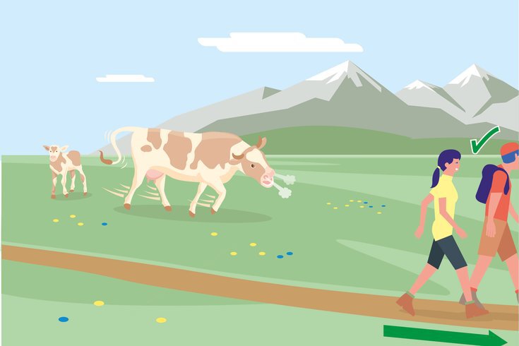 Always keep dogs under control and on a short lead. If an attack by a grazing animal is foreseeable: Immediately unleash!