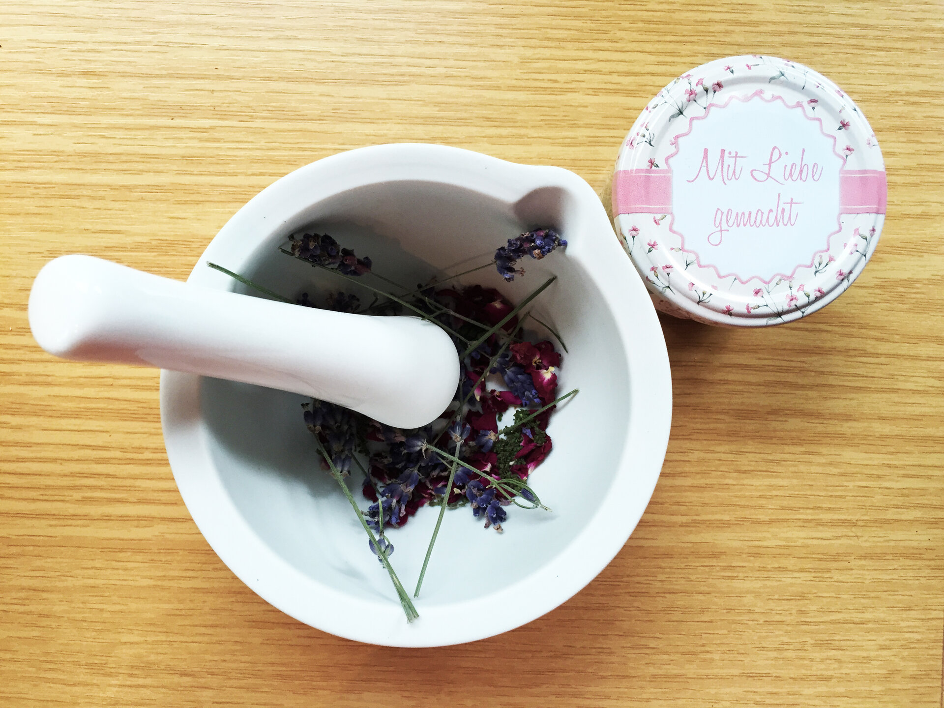 - 20g oil extract with an oil of your choice, e.g. Masterwort oil (very grounding and brings clear thoughts), marigold oil (nurturing), St. John's wort oil (calming)