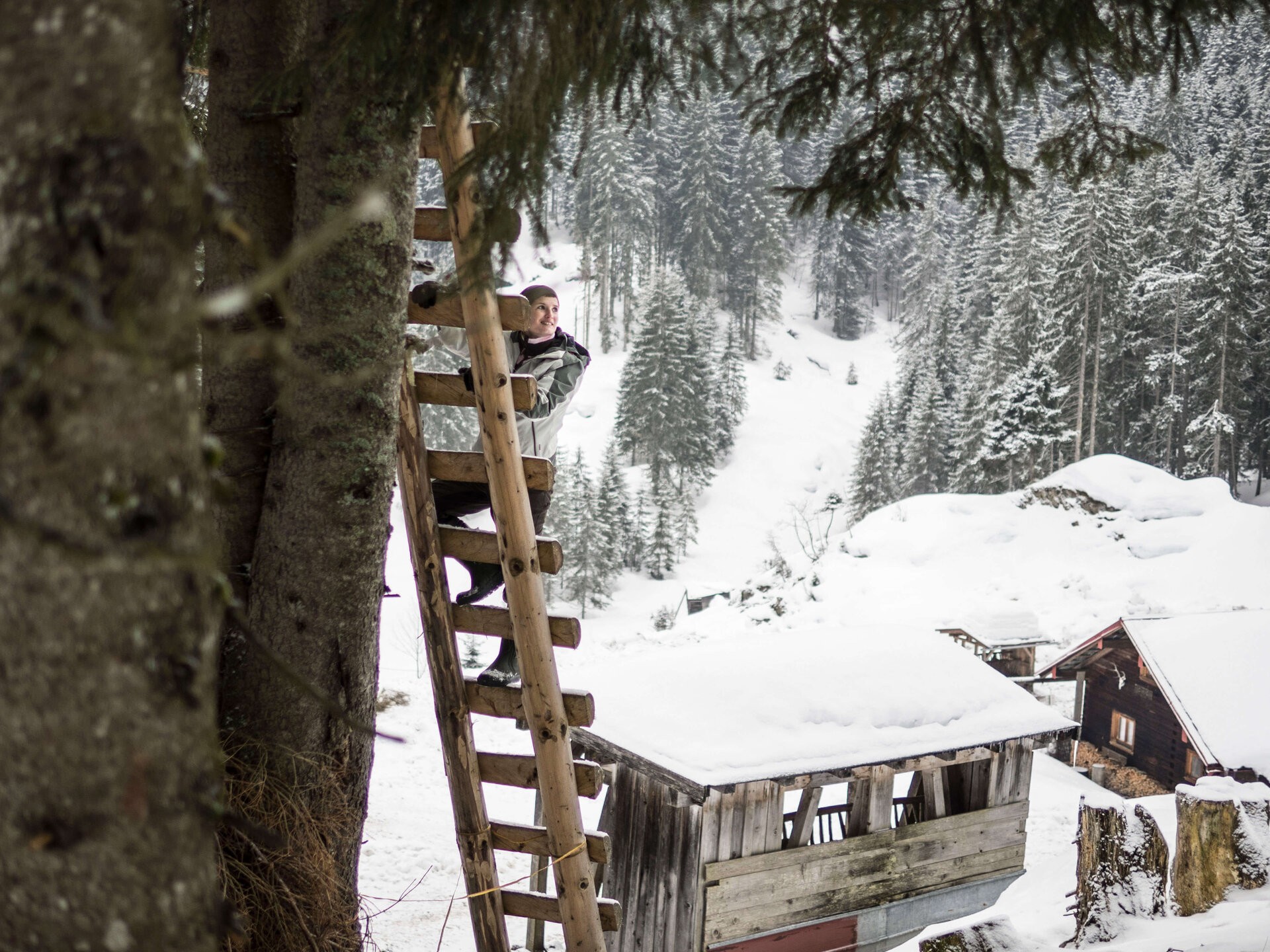 But why train as a hunter just because she likes being outdoors? Because just going for a walk or hiking would be too boring for her. She needs a task on top. Cathi and her husband Martin have therefore leased a small hunting ground of around 235 hectares in the Walsertal valley. Equal rights, as her husband immediately admits. Cathi's eyes sparkle dark green when she talks about how much she loves being out in nature, as a hunter and the person in charge of her hunting ground. She doesn't just go out into nature, she observes, counts, looks after and cares for game and the forest. She particularly enjoys being out and about with her small chainsaw. Then she saws out paths so that she and her husband can go stalking. “You know I have a red pruning saw, it makes a really good bottom,” she laughs.