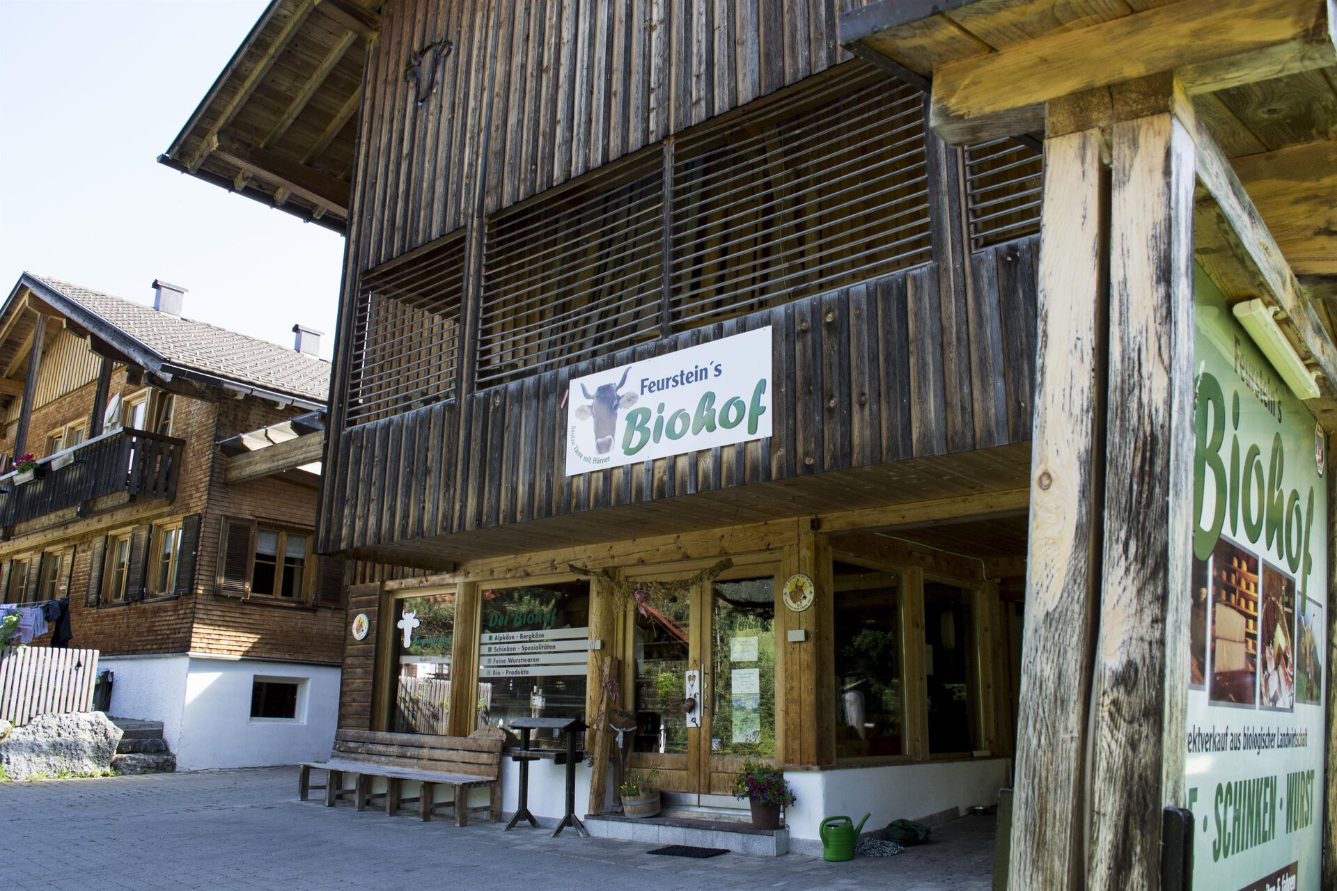 The Biohof Feurstein is located in the district Höfle. Mountain cheese, ham, sausage and meat as well as organic products from our own production. Our farm can be visited (in winter) at any time. Walserbus line 1 - stop Mittelberg, change to bus line 4.