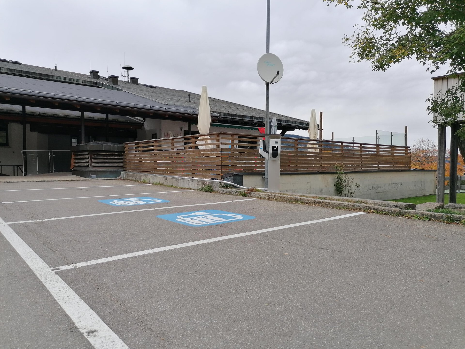 There are two public charging stations for e-vehicles in the parking lot behind the Walserhaus (access via Germobil).
