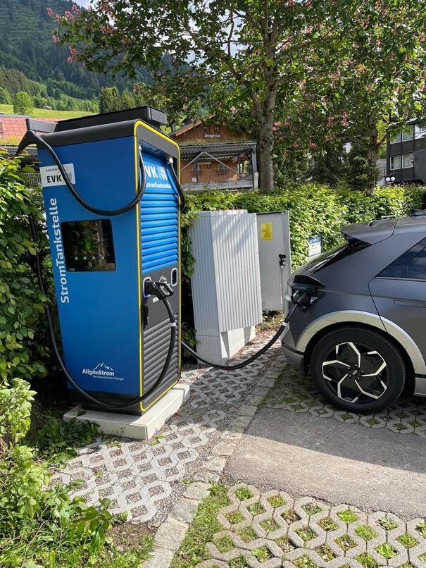 EVK fast charging station directly at Casinoplatz Riezlern, next to the kiosk.