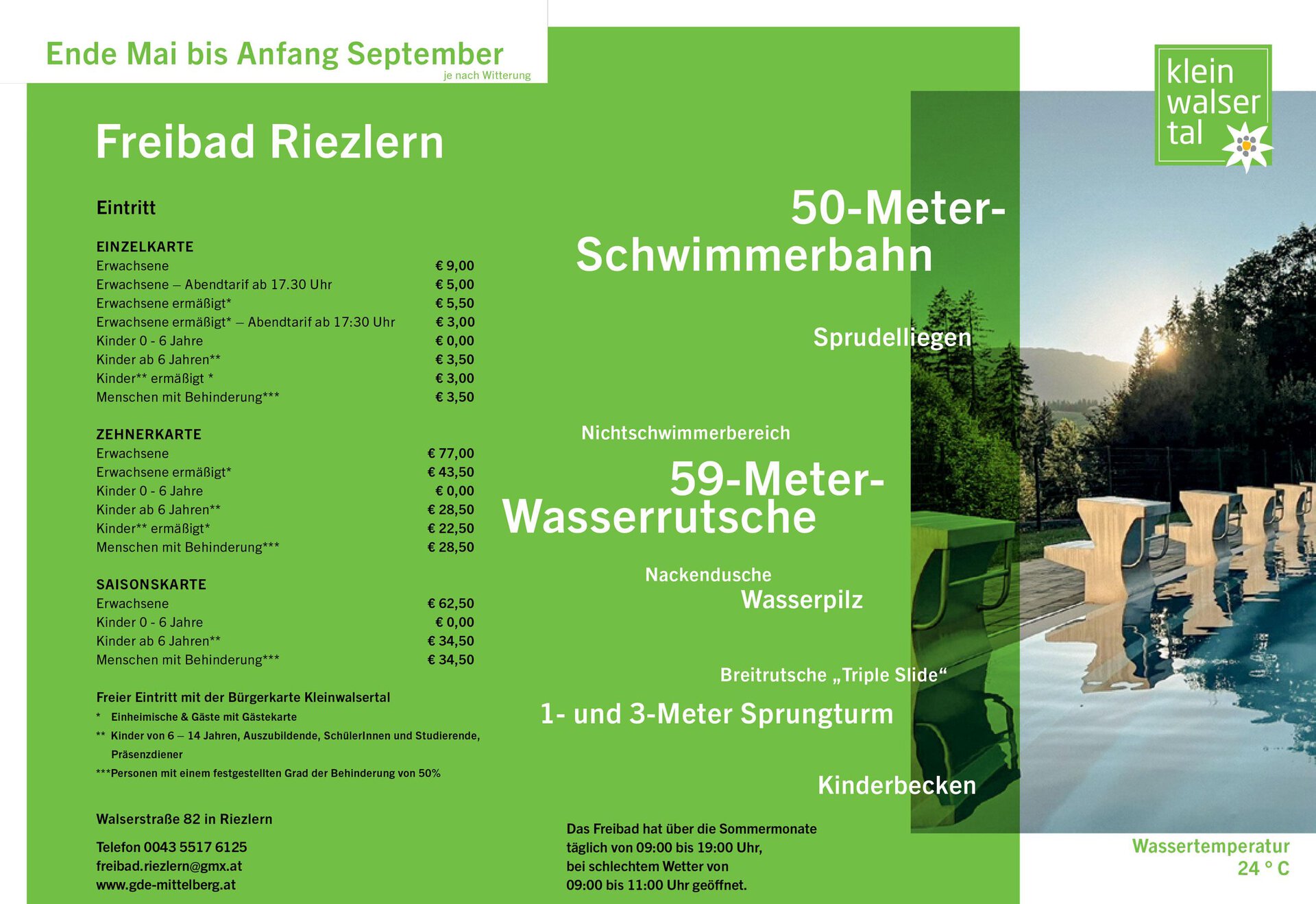 The outdoor swimming pool in Riezlern is open until Sunday, September 07, 2025.