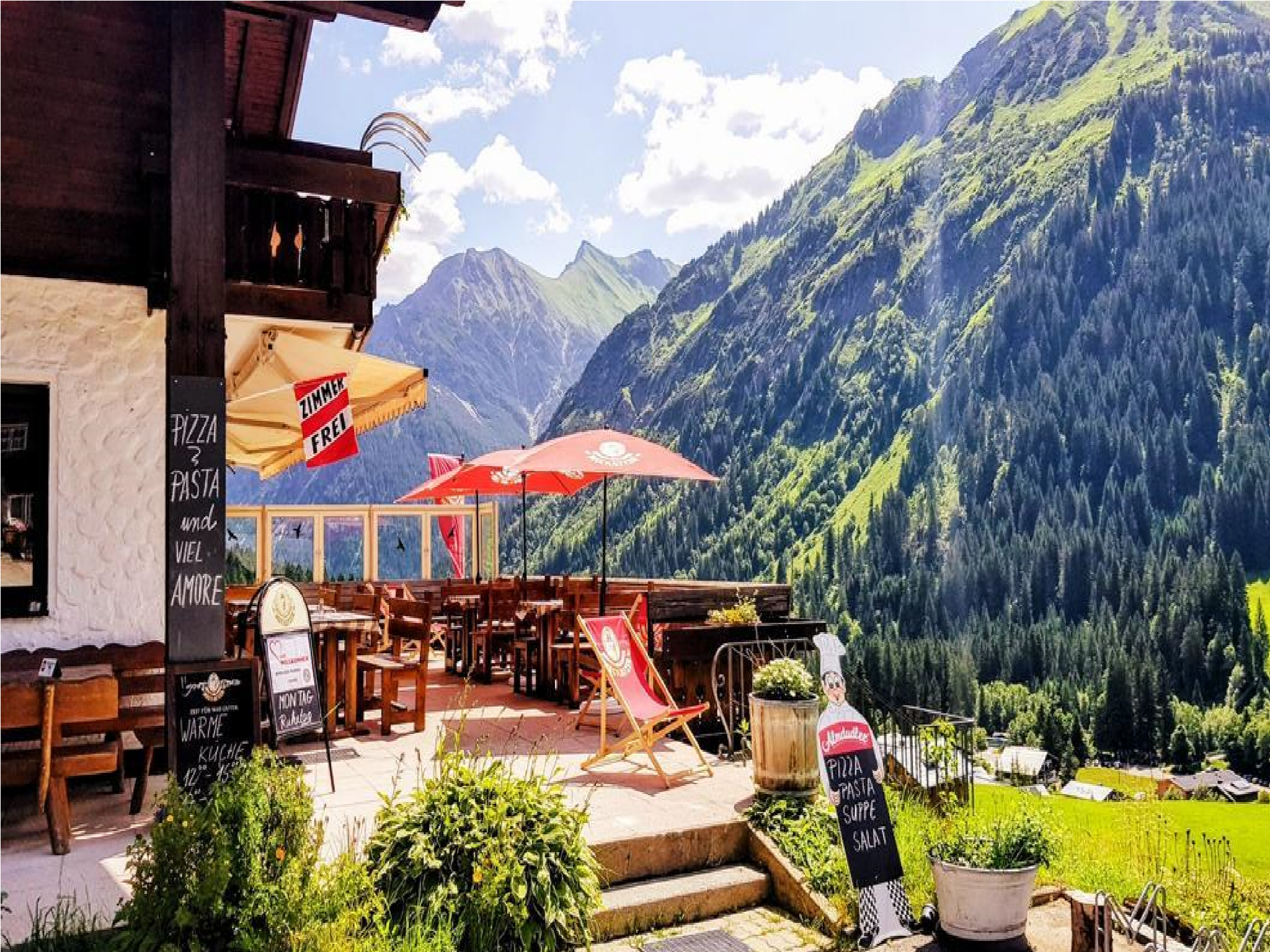 Enjoy your stay in the restaurant or on our sun terrace with breathtaking panoramic views of the surrounding peaks and the highest mountain in the valley, the Großer Widderstein - a highlight in every season. Whether after a long hike on the summer paths or a winter walk on the snow-covered paths that lead directly to us - we are your perfect place to stop.