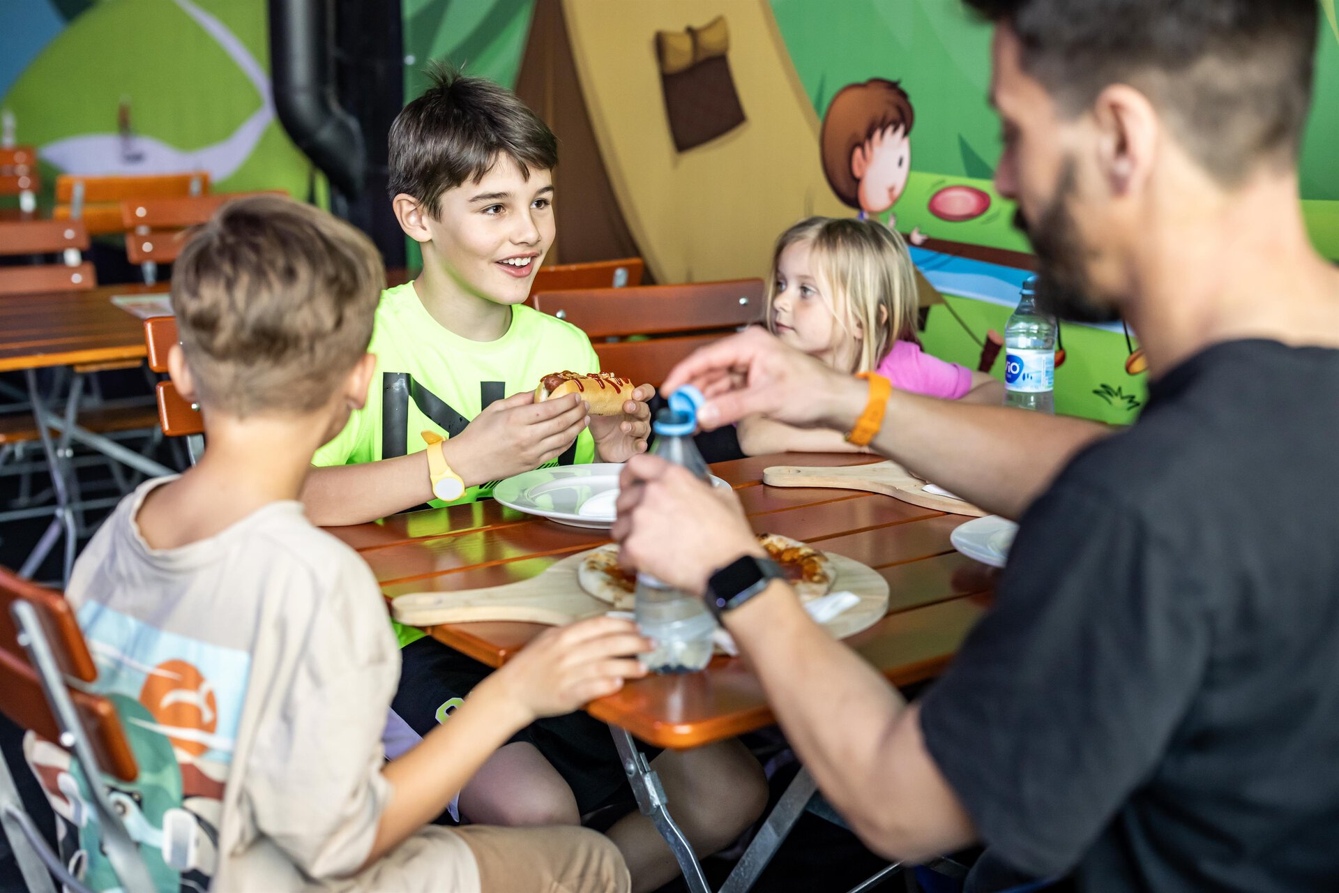 The indoor playground offers over 1,100 m² of fun for the whole family! Here you can jump, slide, romp, play, ride and climb in all variations for young and old explorers! Relaxation zones, seating areas and the Alpine Bistro provide a short break before the fun continues!